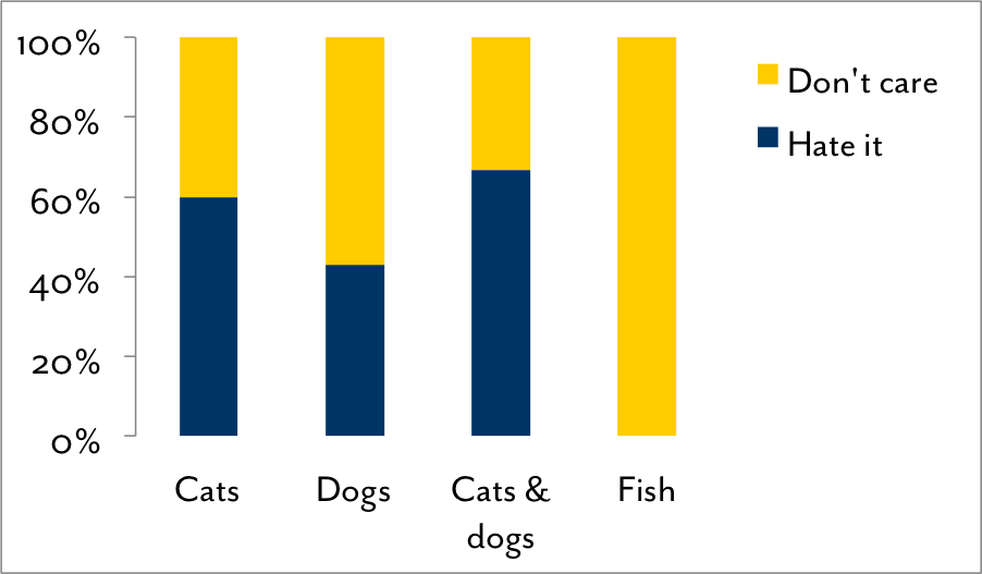 Cats’ and dogs’ differing opinions of the Blue Angels were not reflected in a similar split among their owners. Both cat and dog owners had average scores of 2.5.