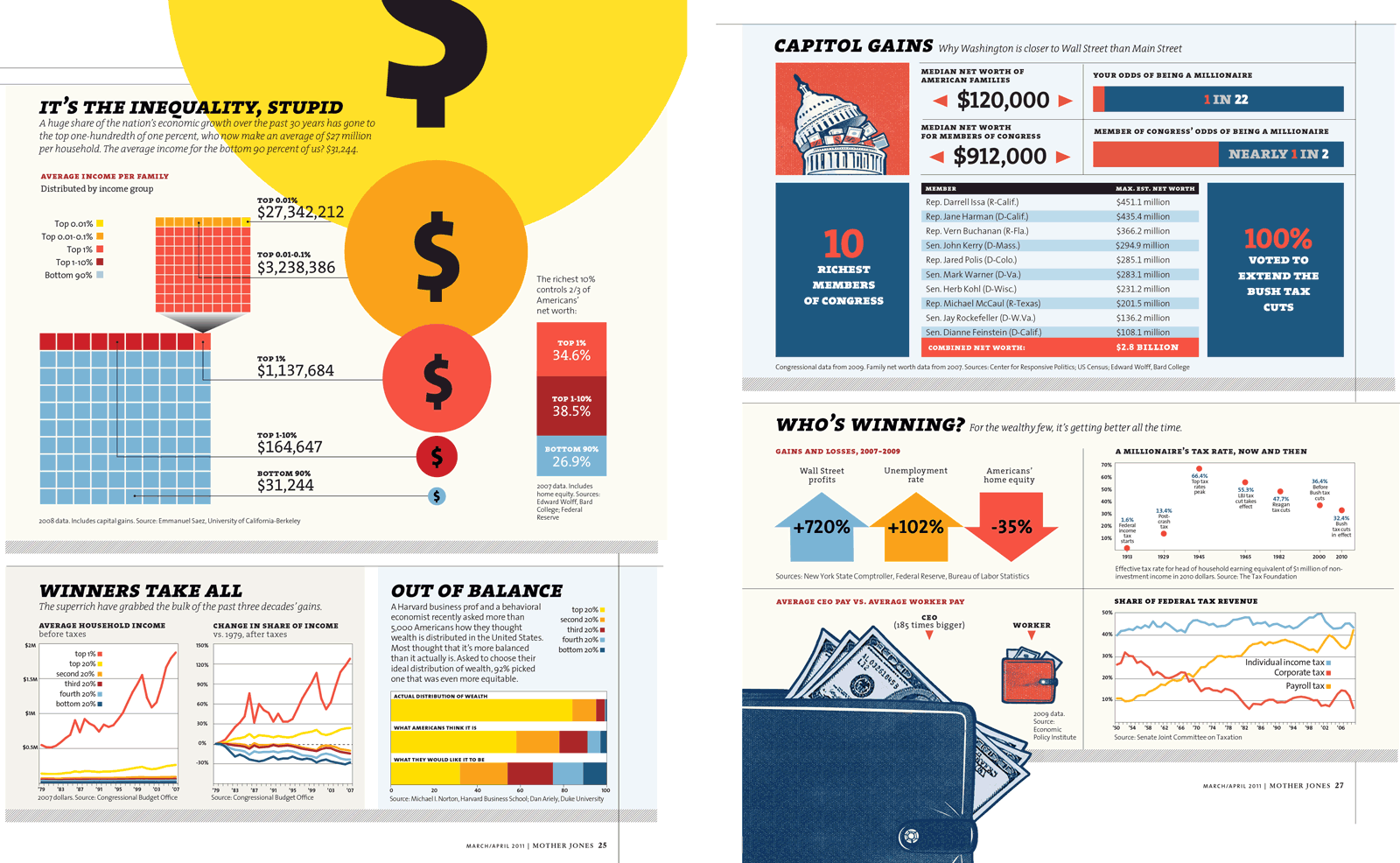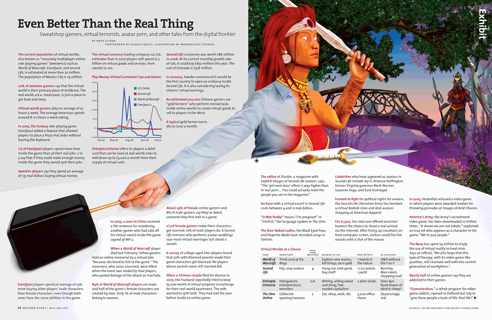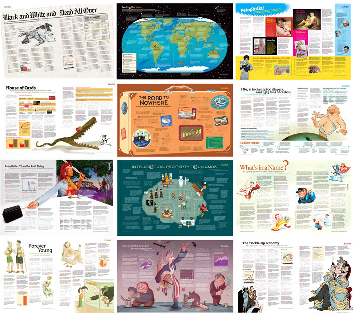 ExhibitBetween 2005 and 2010, I wrote, researched and/or edited nearly 20 Exhibits, two-page spreads of stats, charts, and trivia about a wide range of topics, including credit card debt, virtual worlds, signs of climate change, intellectual property battles, the decline of print, and babies’ environmental footprint. concept by clara jeffery • illustrated by multiple illustrators • design by multiple designers