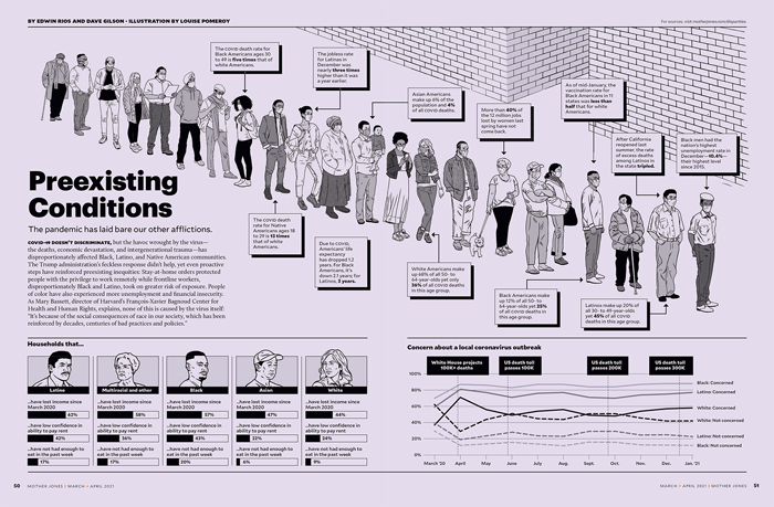 Preexisting ConditionsHow the pandemic unmasked America’s other afflictions. cowritten with edwin rios • illustratons by louise pomeroy • design by adam vieyra